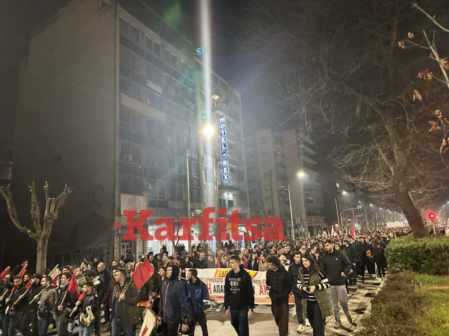 Με το σύνθημα «Να μην ξεχαστεί το έγκλημα» φοιτητές, εργαζόμενοι και μέλη σωματείων έχουν ξεχυθεί στους δρόμους της Θεσσαλονίκης, με αφορμή την επέτειο της τραγωδίας των Τεμπών.