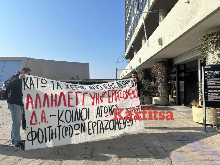 Συγκέντρωση διαμαρτυρίας πραγματοποιείται αυτή την ώρα έξω απο την Πρυτανεία του ΑΠΘ.