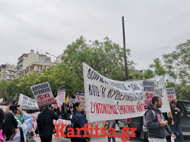 Απεργιακή συγκέντρωση πραγματοποιείται αυτή την ώρα έξω από το κτίριο που στεγάζονται τα γραφεία του  Εργατοϋπαλληλικού Κέντρου Θεσσαλονίκης τιμώντας την Εργατική Πρωτομαγιά.