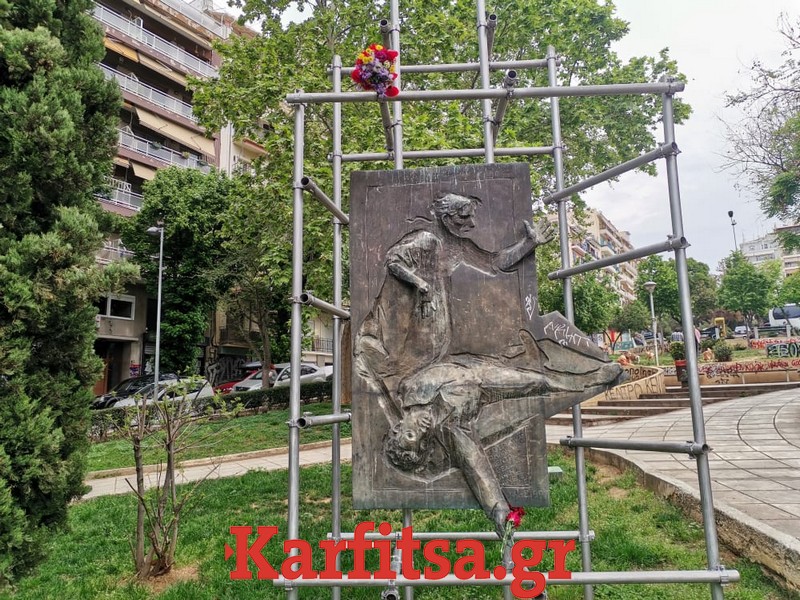 Από τις 10:30 περίπου στο σημείο άρχισαν να συγκεντρώνονται μέλη σωματείων και του ΕΚΘ, κρατώντας πανό με συνθήματα. Σωματεία κατέθεσαν και στεφάνια στο σημείο.