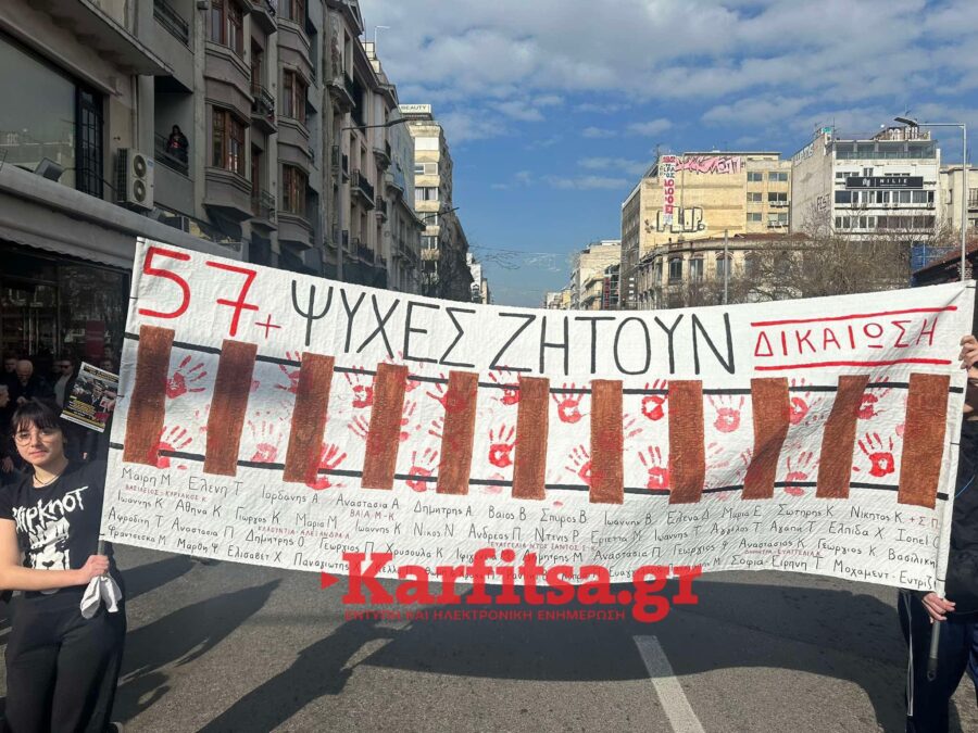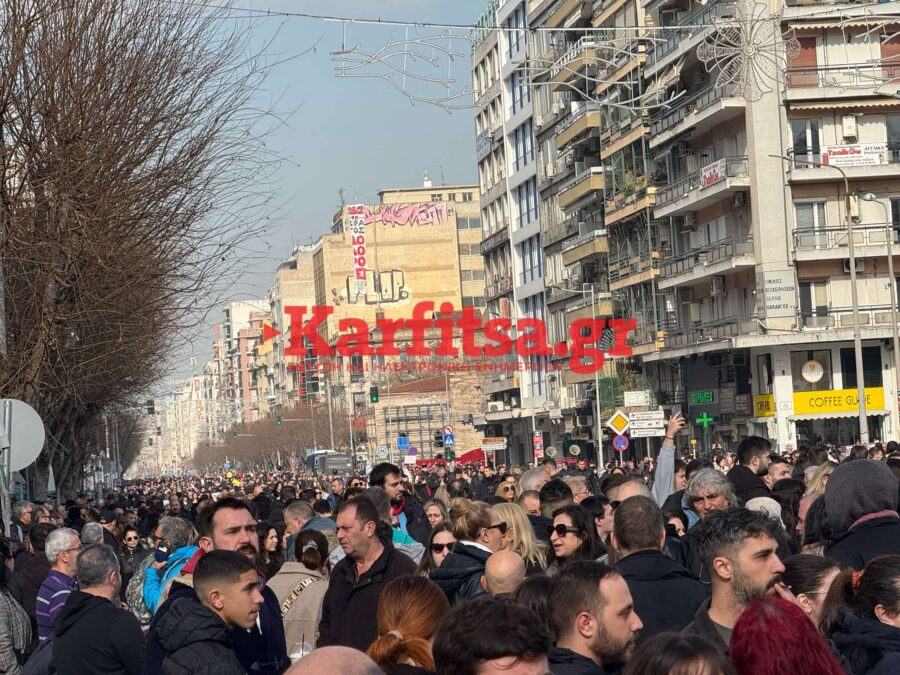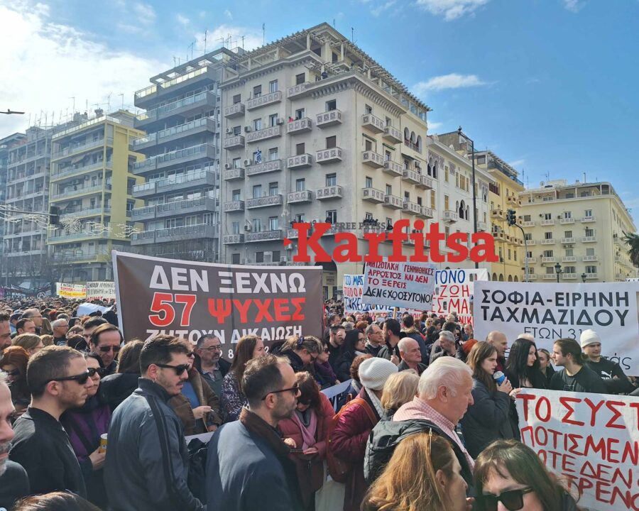 Μια λαοθάλασσα έχει κατακλύσει όλο το κέντρο της Θεσσαλονίκης, ζητώντας να αποδοθεί δικαιοσύνη για τους 57 νεκρούς των Τεμπών και να αποκαλυφθεί επιτέλους η αλήθεια, δύο χρόνια μετά από το τραγικό δυστύχημα.