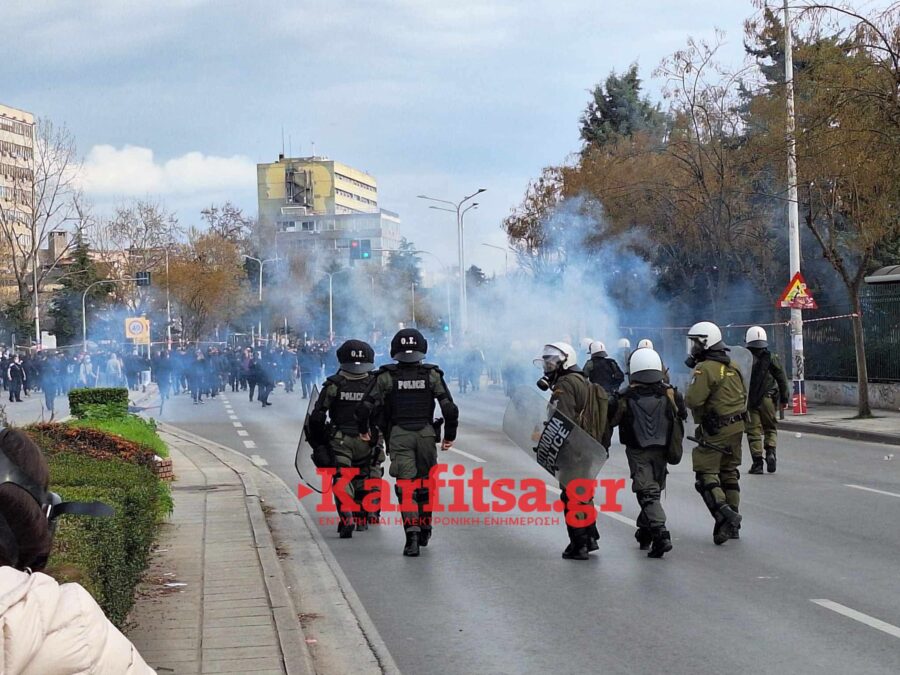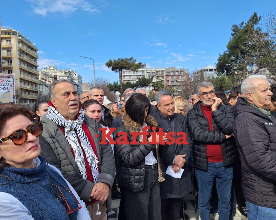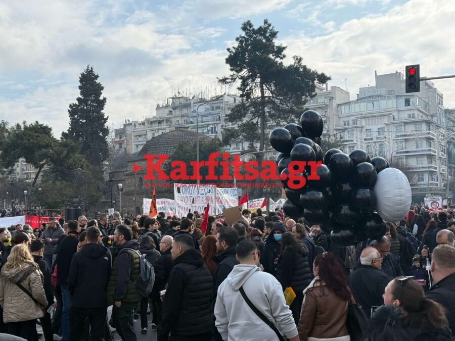 Στο άγαλμα Βενιζέλου έχουν συγκεντρωθεί από νωρίς σωματεία, φοιτητές και μέλη συλλόγων, ενώ με καλέσματα έχουν συγκεντρωθεί μέλη της εξωκοινοβουλευτικής αριστεράς και στην Καμάρα. Το κέντρο της πόλης είναι απροσπέλαστο, με την οδό Εγνατία να έχει κατακλυστεί από διαδηλωτές. «Δεν ξεχνώ, 57 ψυχές ζητούν δικαίωση», «Το σύστημά τους είναι με αίμα ποτισμένο», «Μανούλα μου, μου πήραν το οξυγόνο που κάποτε εσύ μου χάρισες», είναι μερικά από τα συνθήματα σε πανό και πλακάτ που κρατούν οι διαδηλωτές.