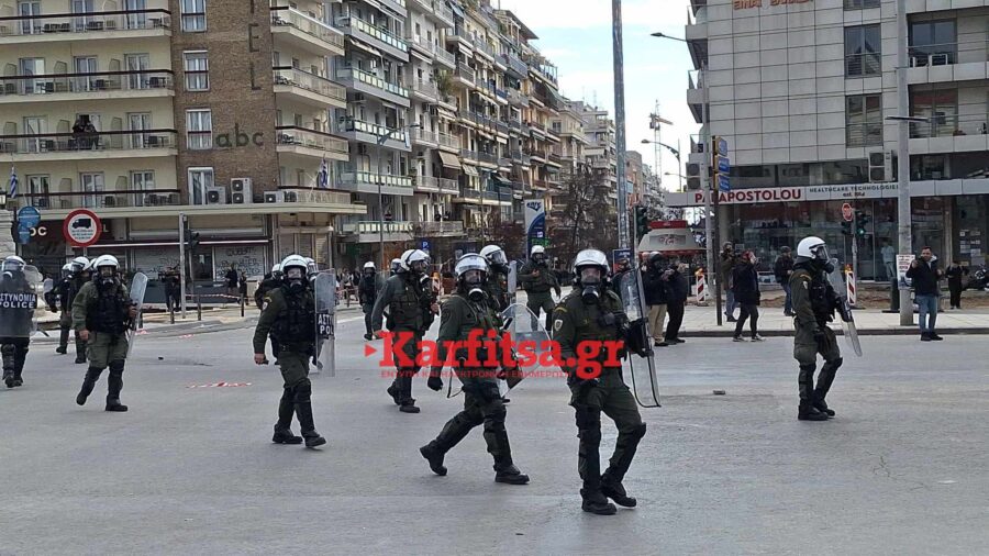 16:08 Νέα ένταση στο κέντρο – Κουκουλοφόροι πετούν μπουκάλια και αντικείμενα στα ΜΑΤ στη συμβολή των Εγνατία και Εθν. Αμύνης