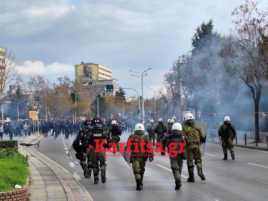 12:52 Φίλαθλοι της ομάδας του ΠΑΟΚ ήρθαν οργανωμένα απο την οδό Αναγεννήσεως φωνάζοντας συνθήματα και κρατώντας πανό έφτασαν μπροστά στον ΟΣΕ