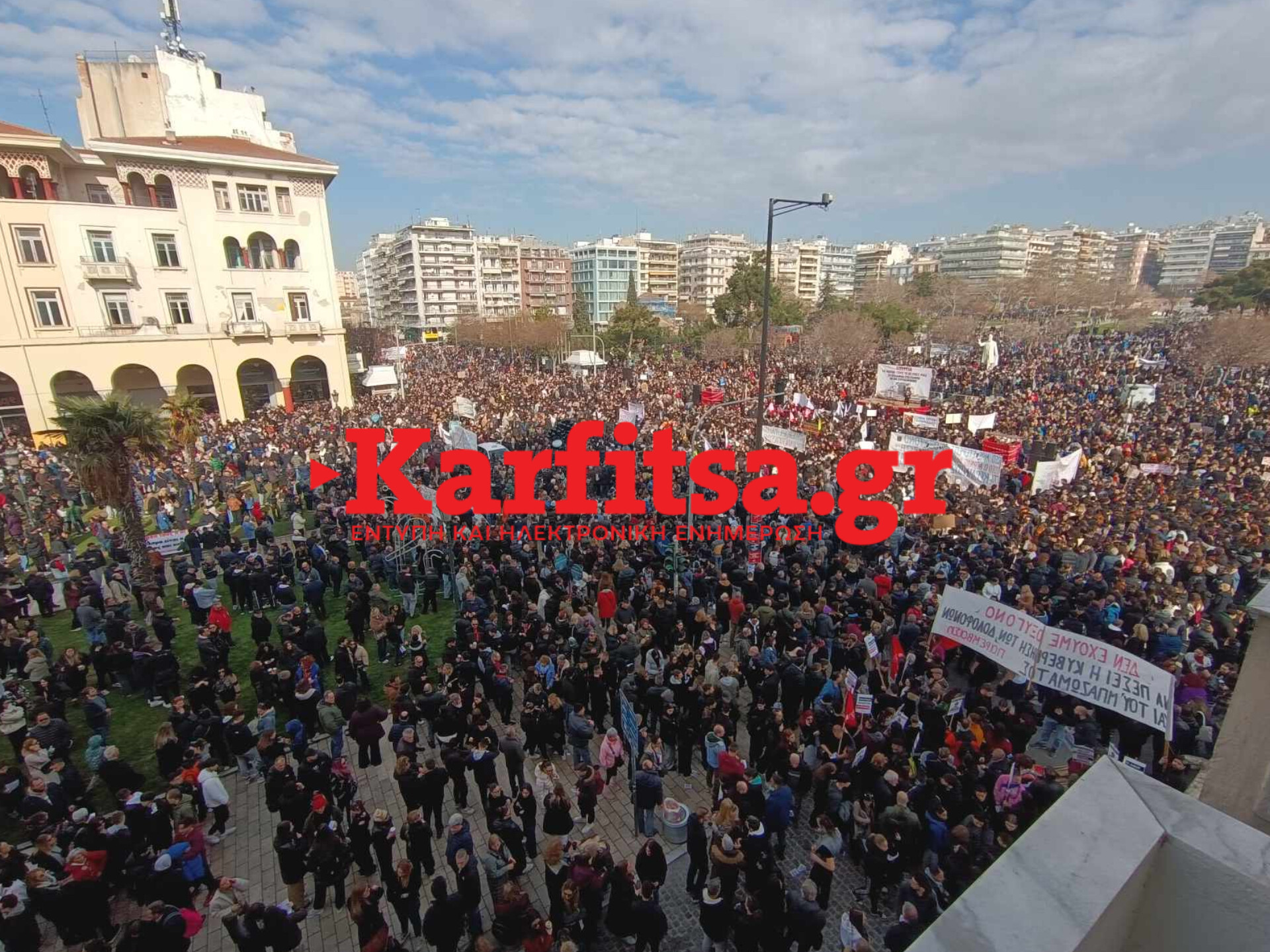 Μια λαοθάλασσα έχει κατακλύσει όλο το κέντρο της Θεσσαλονίκης, ζητώντας να αποδοθεί δικαιοσύνη για τους 57 νεκρούς των Τεμπών και να αποκαλυφθεί επιτέλους η αλήθεια, δύο χρόνια μετά από το τραγικό δυστύχημα.