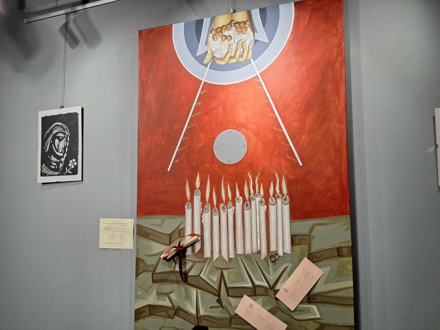 Στο έργο που δημιουργήθηκε κατά τα πρότυπα της χριστιανικής τέχνης απεικονίζονται τα θύματα, λευκά κεριά αναμμένα και εισιτήρια για το μοιραίο δρομολόγιο.