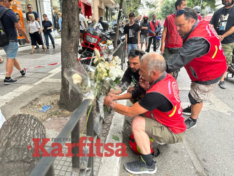 Στο σημείο οι συνάδελφοι του αδικοχαμένου διανομέα, τήρησαν ενός λεπτού σιγή και κατέθεσαν λουλούδια.