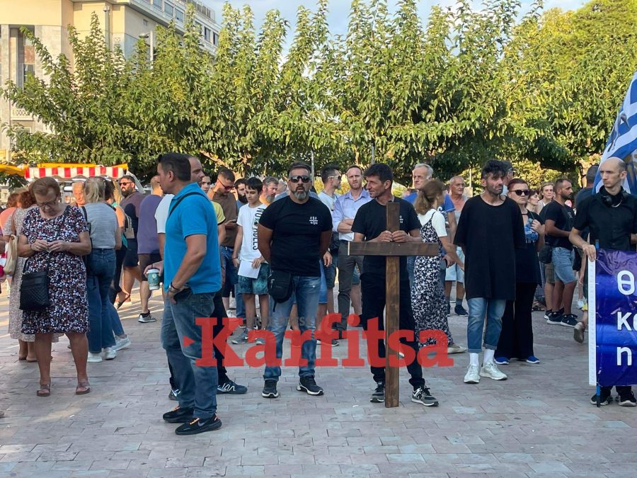 Κρατώντας εικόνες, σταυρούς και ελληνικές σημαίες στα χέρια, «πιστοί αρνητές» όλων των ηλικιών άρχισαν να συγκεντρώνονται στο σημείο συνάντησης, έπειτα από κάλεσμα μέσω των μέσων κοινωνικής δικτύωσης από οργανώσεις που είχαν πρωτοστατήσει και στις διαμαρτυρίες κατά των εμβολίων του Covid- 19.