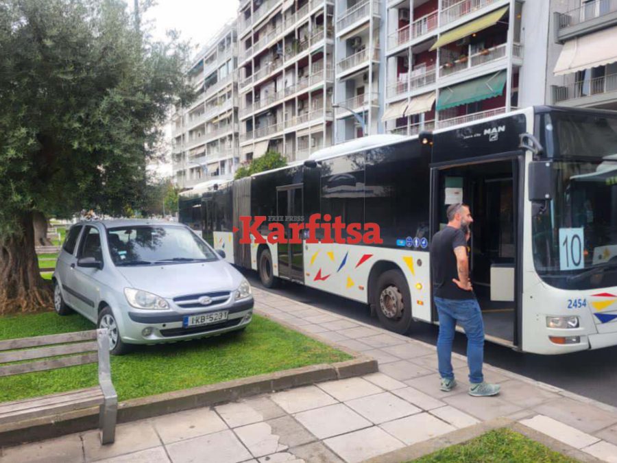 Θεσσαλονίκη: Ξέχασε να βάλει το χειρόφρενο και το αυτοκίνητο έπεσε σε λεωφορείο (ΦΩΤΟ)
