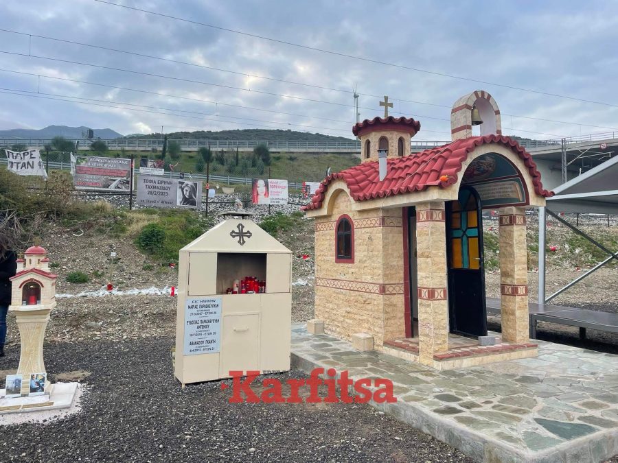 Στο σημείο όπου συγκρούστηκαν τα δύο τρένα, οι συγγενείς των θυμάτων έχουν χτίσει ένα εκκλησάκι στη μνήμη τους γεμίζοντας τη με κάποιες από τις φωτογραφίες τους. Στο ίδιο ακριβώς σημείο, το καλοκαίρι, οι συγγενείς φύτεψαν 57 δέντρα, ένα για κάθε δικό τους άνθρωπο που έχασε τη ζωή του εκείνο το βράδυ της 28ης Φεβρουαρίου στις 23:21, λίγο πιο έξω από τα Τέμπη.