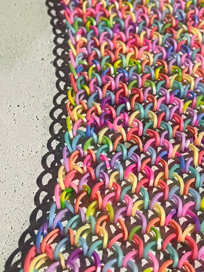 Η María Javiera Castillo στην καλλιτεχνική της πρακτική διερευνά τι θεωρείται αφελές, παιδικό και μερικές φορές νοσταλγικό. Παρουσιάζει δύο έργα: το Nostalgic Love Letter, Part II, έναν πολύχρωμο, ελαστικό αργαλειό από λαστιχάκια που αιωρείται στον χώρο, και το Homenaje, ένα έργο-φόρο τιμής στην Ελλάδα, μέσα από τα παιδικά και παιχνιδιάρικα στοιχεία των χούλα χουπ», εξηγεί ο ίδιος στην Karfitsa.