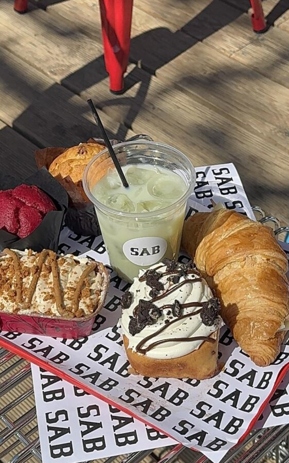Ιδιαίτερες είναι και οι προτάσεις για ελαφρύ φαγητό, με τα Oreo cinnamon rolls, τα cake bombs, και το cheesecake με lotus, να βρίσκονται ήδη στα αγαπημένα πιάτα των πελατών. Εάν θέλετε ένα tip, πρέπει σίγουρα να δοκιμάσετε τις κρέπες, είτε αλμυρή, είτε γλυκιά, τα toasties αλλά και τα smoothies. Το βράδυ το SAB μεταμορφώνεται από καφέ – bakery σε χώρο για κοκτέιλ και χαλαρό ποτό. Τα δύο signature κοκτέιλς, το Toumba Hood και το ομώνυμο SAB είναι ήδη περιζήτητα.