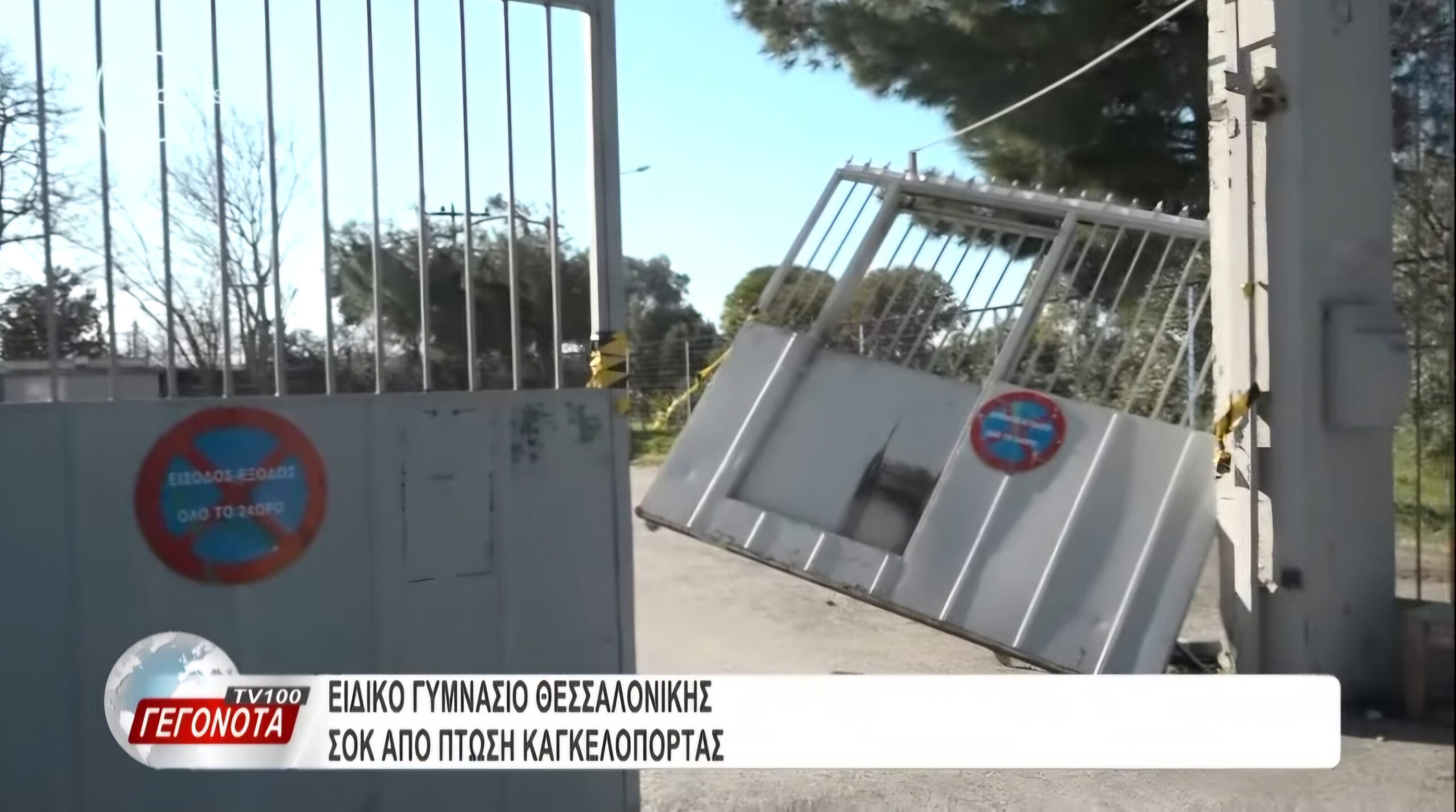 Κατέρρευσε σιδερένια καγκελόπορτα στην είσοδο του Δημοσίου Ειδικού Γυμνασίου Θεσσαλονίκης το πρωί της Τετάρτης 18/02 λόγω των ισχυρών ανέμων που σφυροκοπούσαν την πόλη από το προηγούμενο βράδυ. Από καθαρή τύχη δεν τραυματίστηκαν μαθητές και εκπαιδευτικοί.