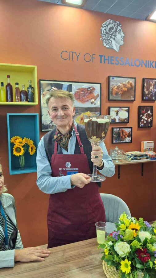 Φόρεσε την ποδιά και δημιούργησε ένα τεράστιο προφιτερόλ. Τι σόι «Πόλη των Γλυκών» θα ήταν η Θεσσαλονίκη εάν ο αρμόδιος αντιδήμαρχος δεν ήξερε να τα φτιάχνει και να τα κερνάει;