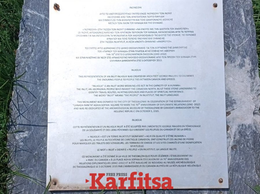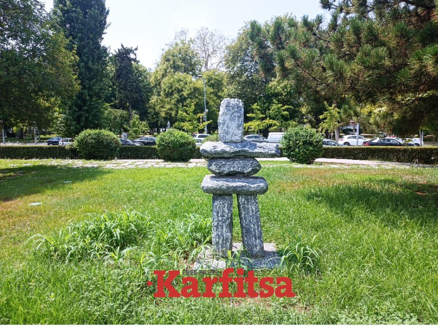 Το γλυπτό που αναπαριστά ένα «inukshuk» έχει μετακινηθεί στην αυλή μουσείου της Θεσσαλονίκης 11 χρόνια μετά τα εγκαίνιά του.