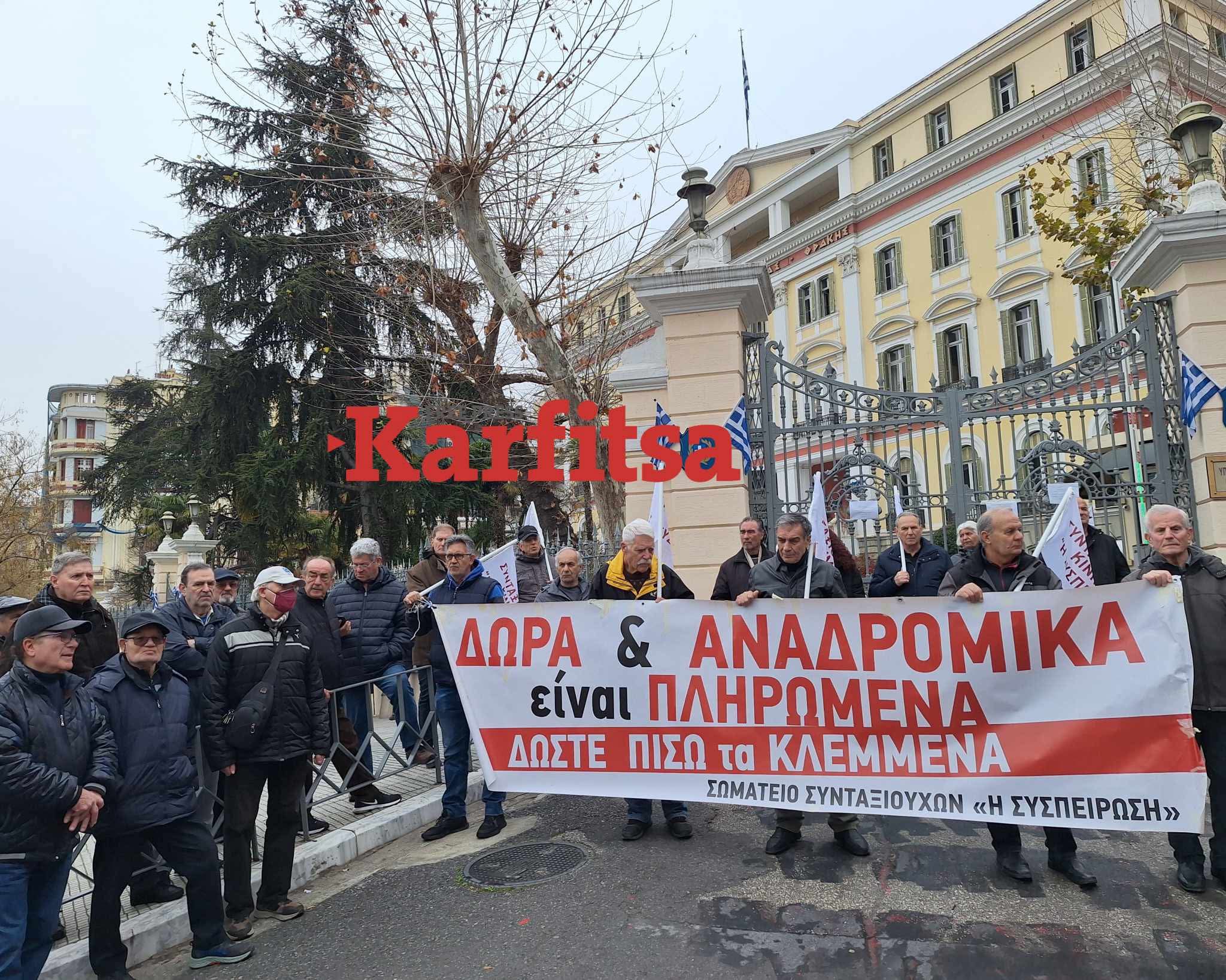 Να δοθούν άμεσα τα αναδρομικά τα οποία είναι «παρανόμως παρακρατηθέντα», όπως αναφέρουν, ζητούν συνταξιούχοι που πραγματοποιούν συγκέντρωση διαμαρτυρίας έξω από ...